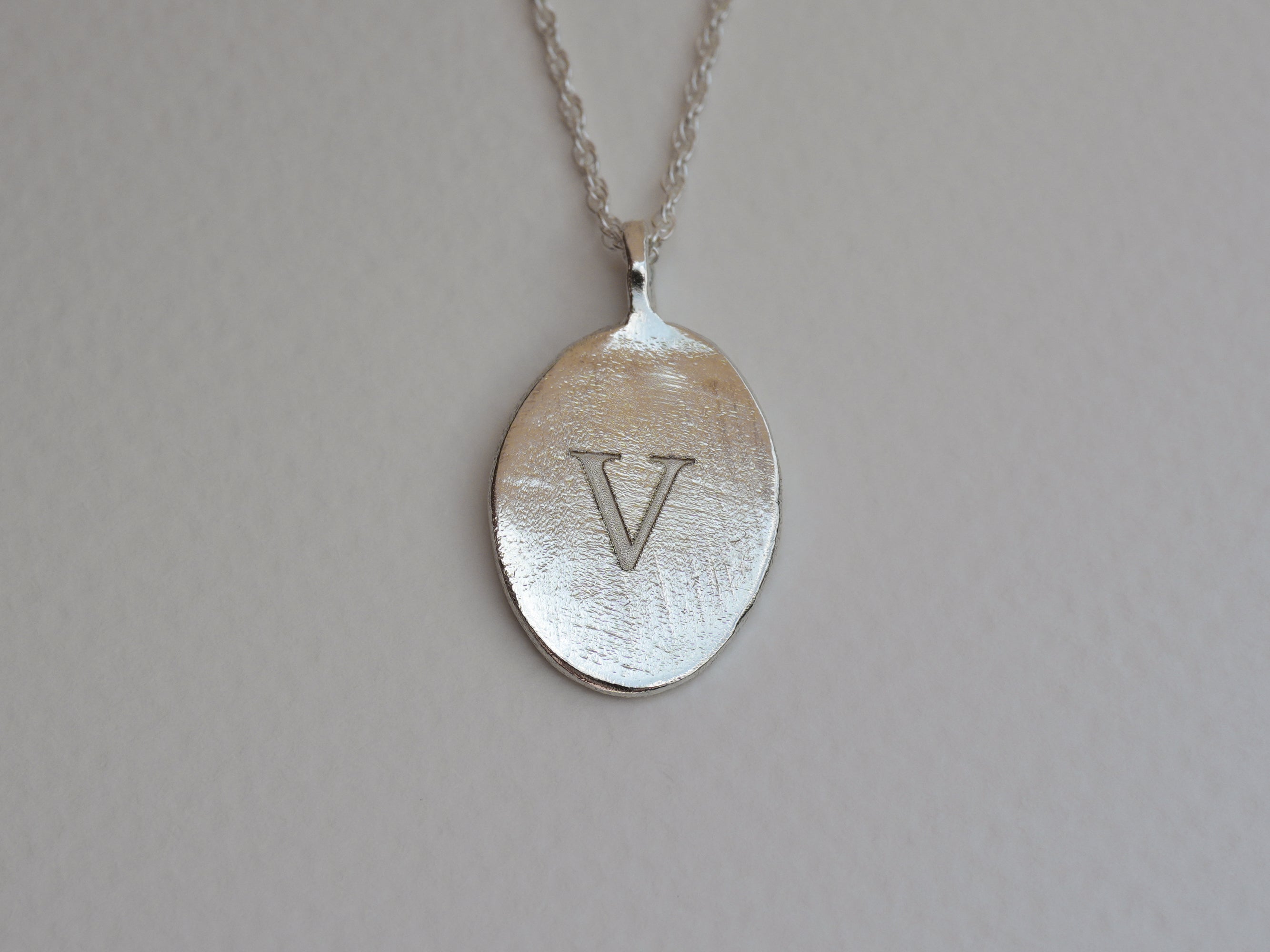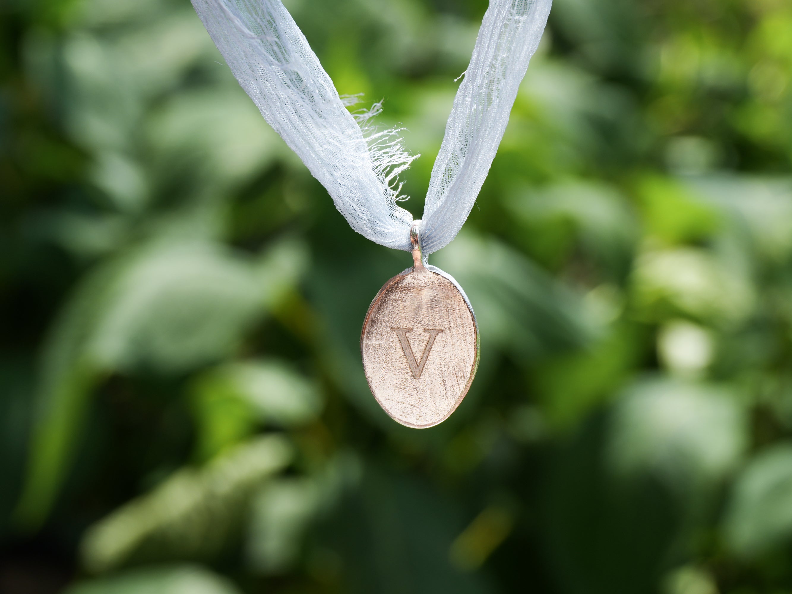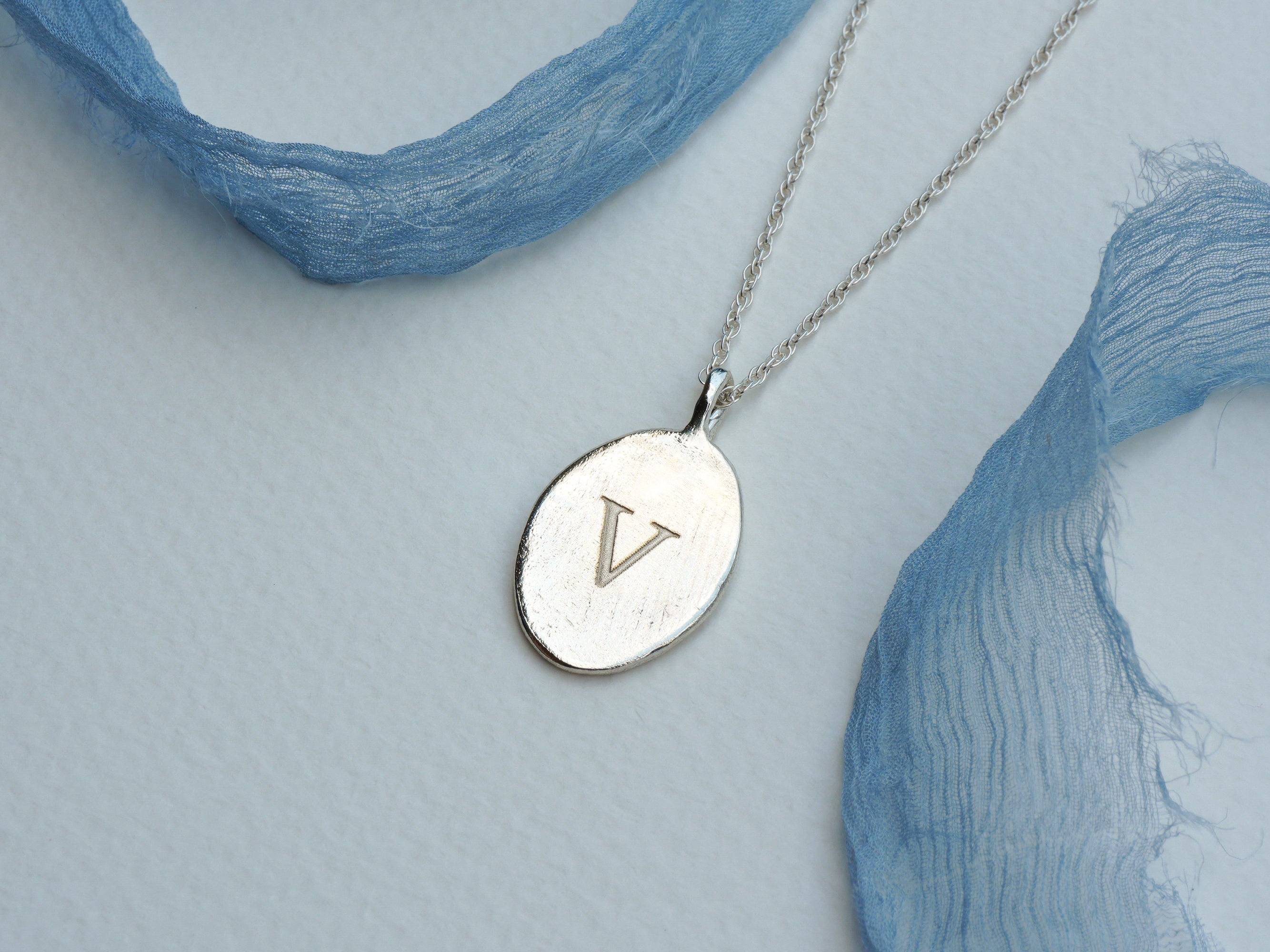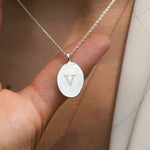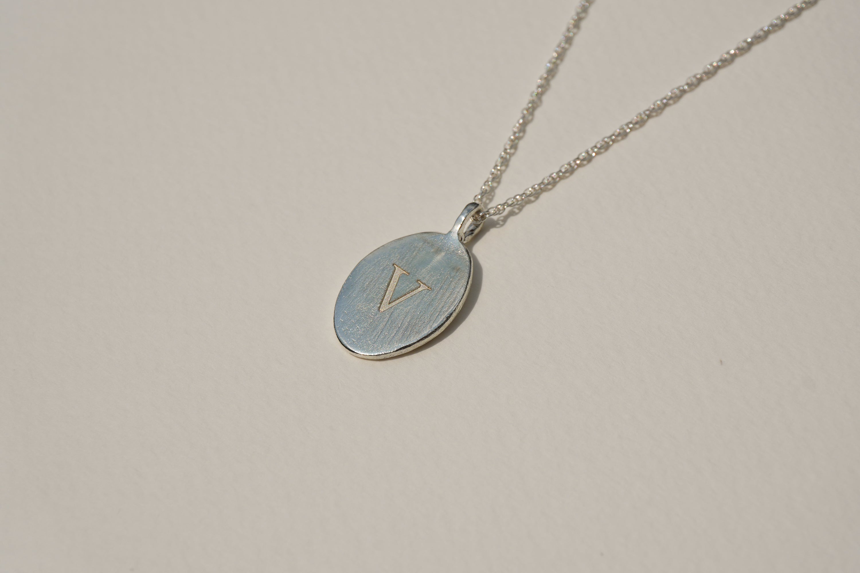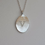 This hand-carved elegant oval engraved necklace has a minimalist silhouette and a subtle charm to it with it's unique handmade touch. Choose your letter of choice to make the perfect gift for yourself or for someone special.