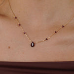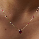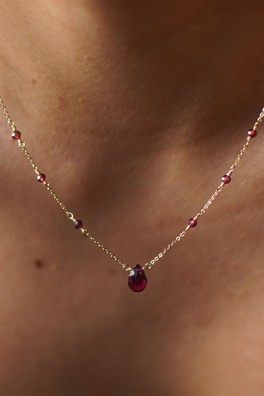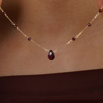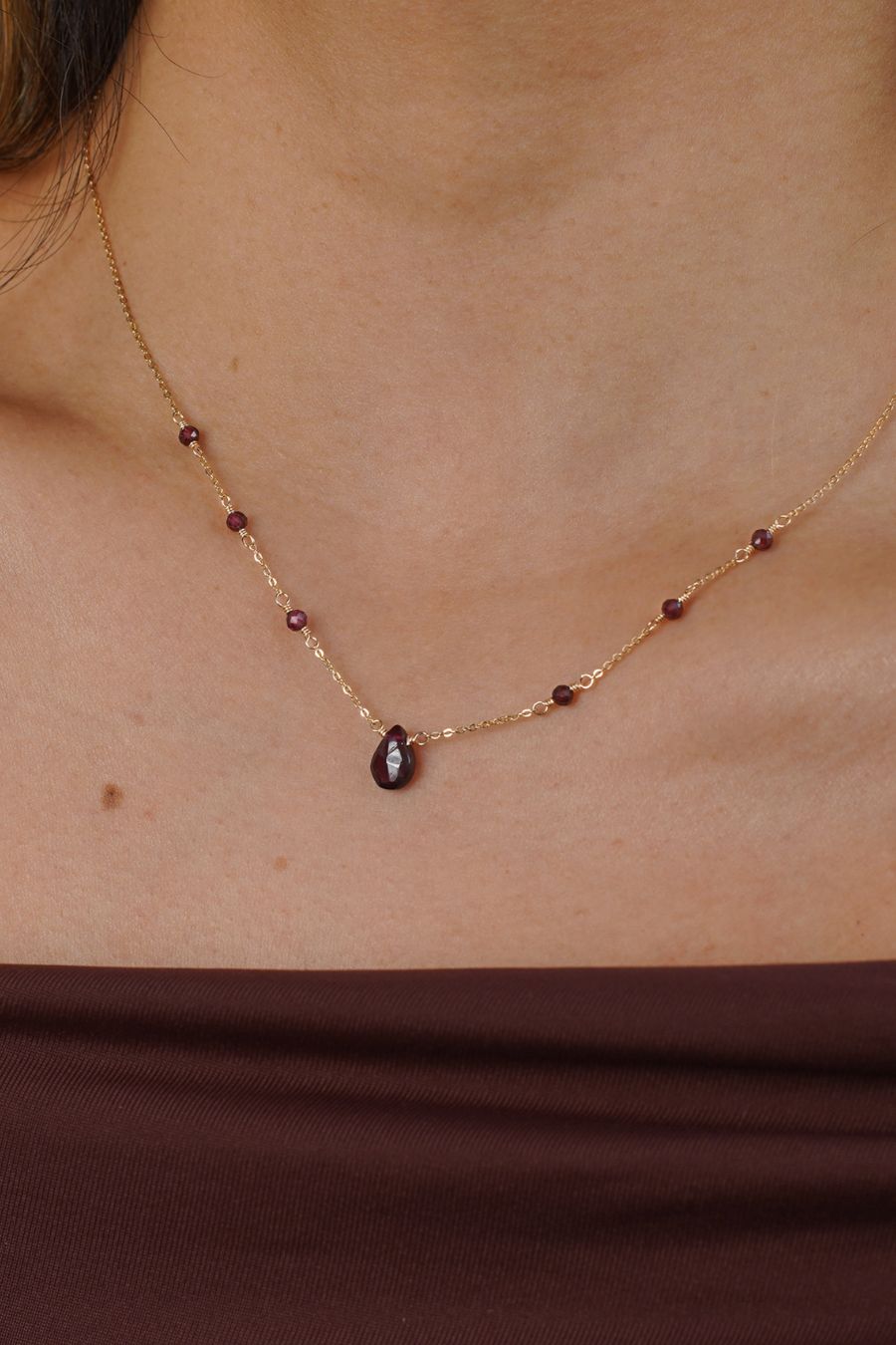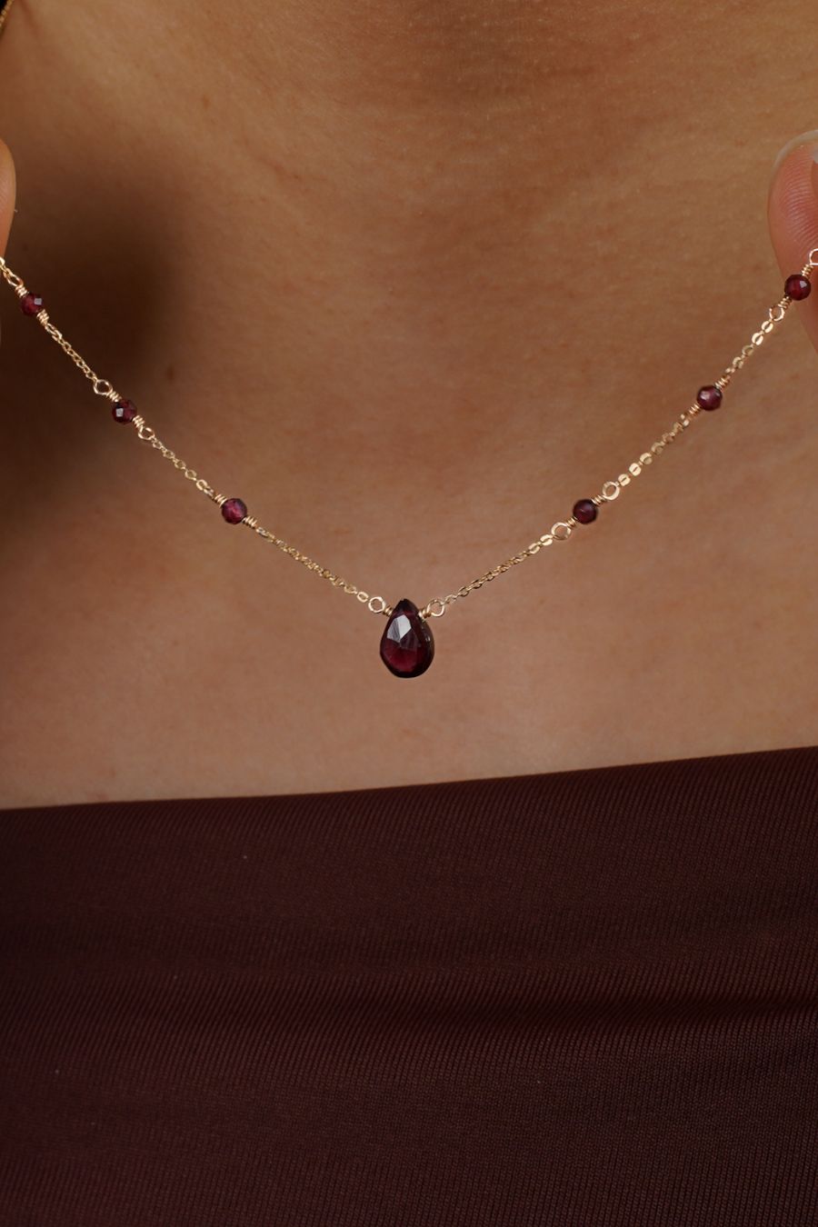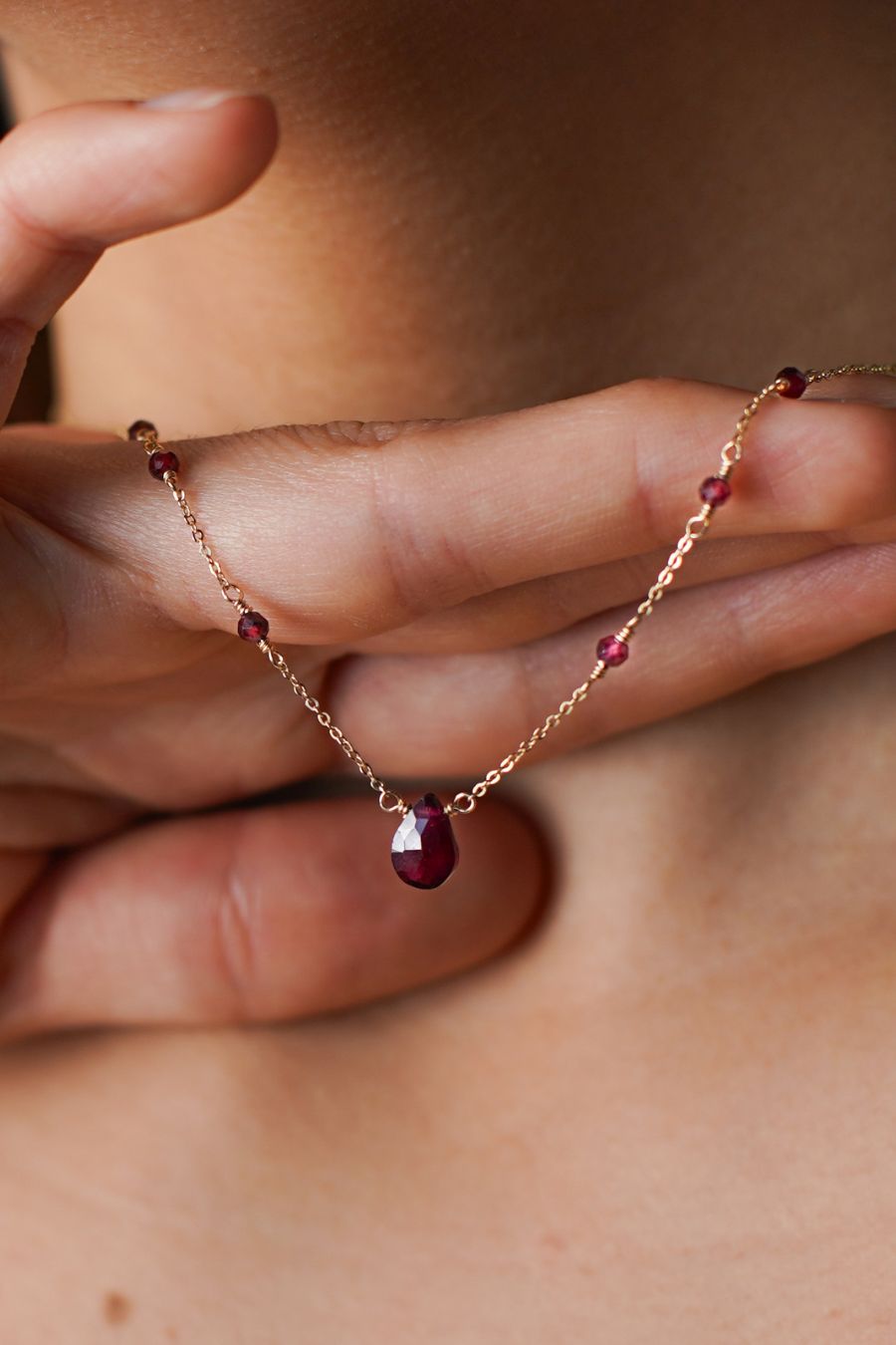 Immerse yourself in the enchanting glow of the Crimson Night Necklace, a piece that whispers tales of twilight romance. Suspended on a delicate chain, this stunning garnet pendent is both elegant and whimsical—a perfect adornment for those who treasure the poetry of magical moments. Whether worn alone or layered, it’s a timeless piece that radiates warmth, passion, and an irresistible charm.
