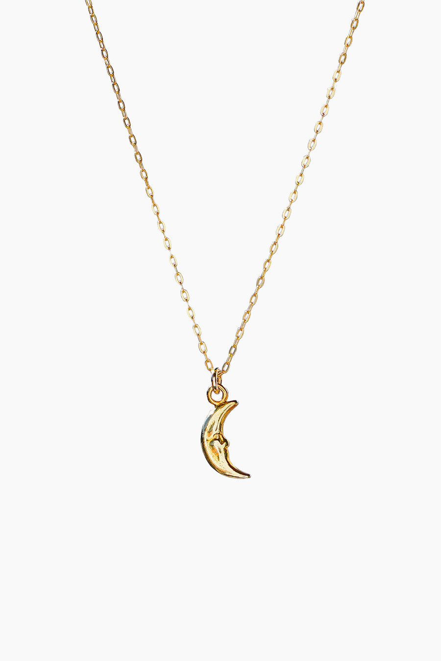A perfectly polished detailed moon pendant that sits on a dainty chain that glimmers. Like the moonlight, this necklace will bring a shine with every step you take.
