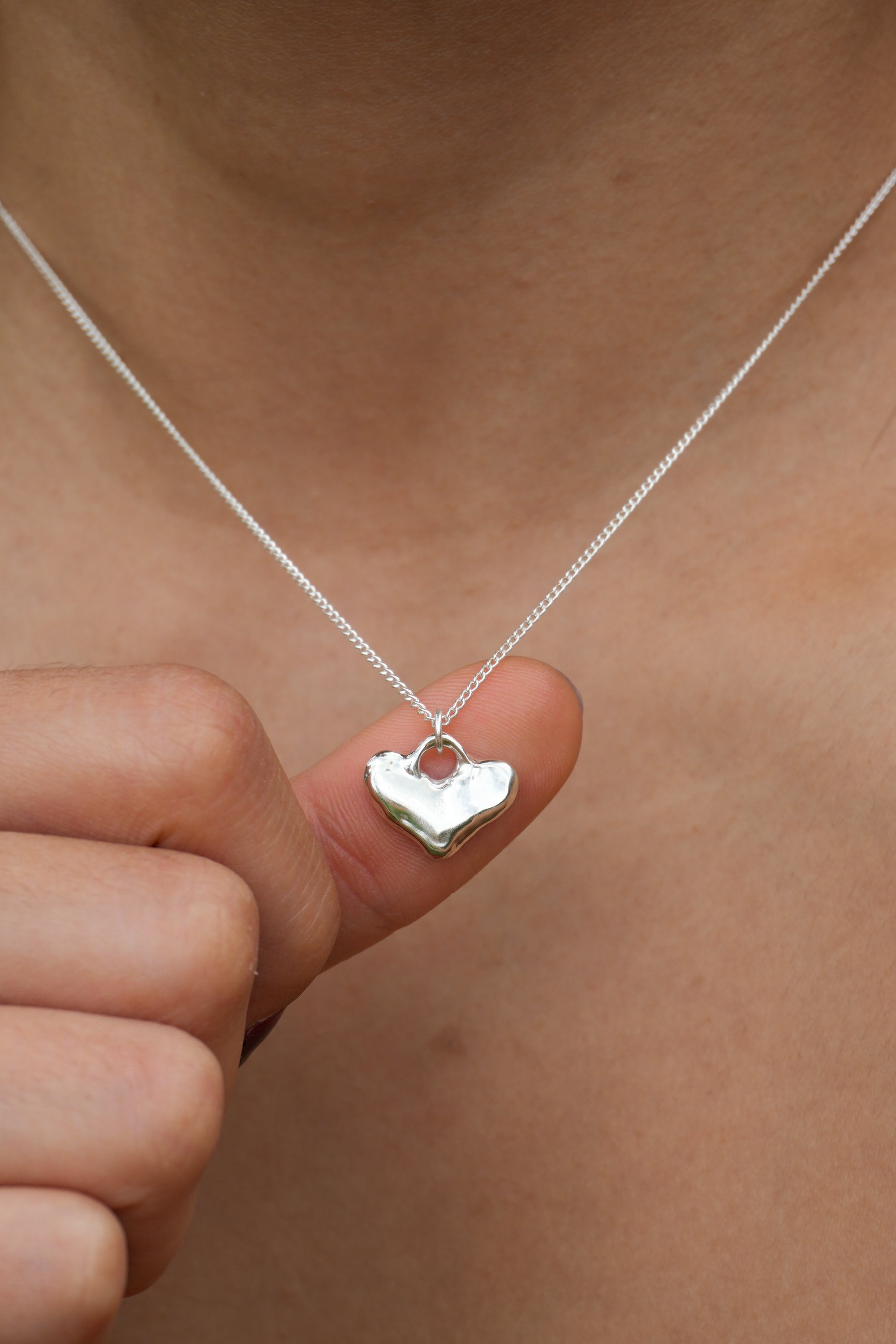 A delicate twist on the classic heart tag, this pendant features an organic textured finish for a handcrafted look. Add an engraved initial for a personal touch—perfect for you or a loved one.