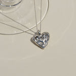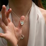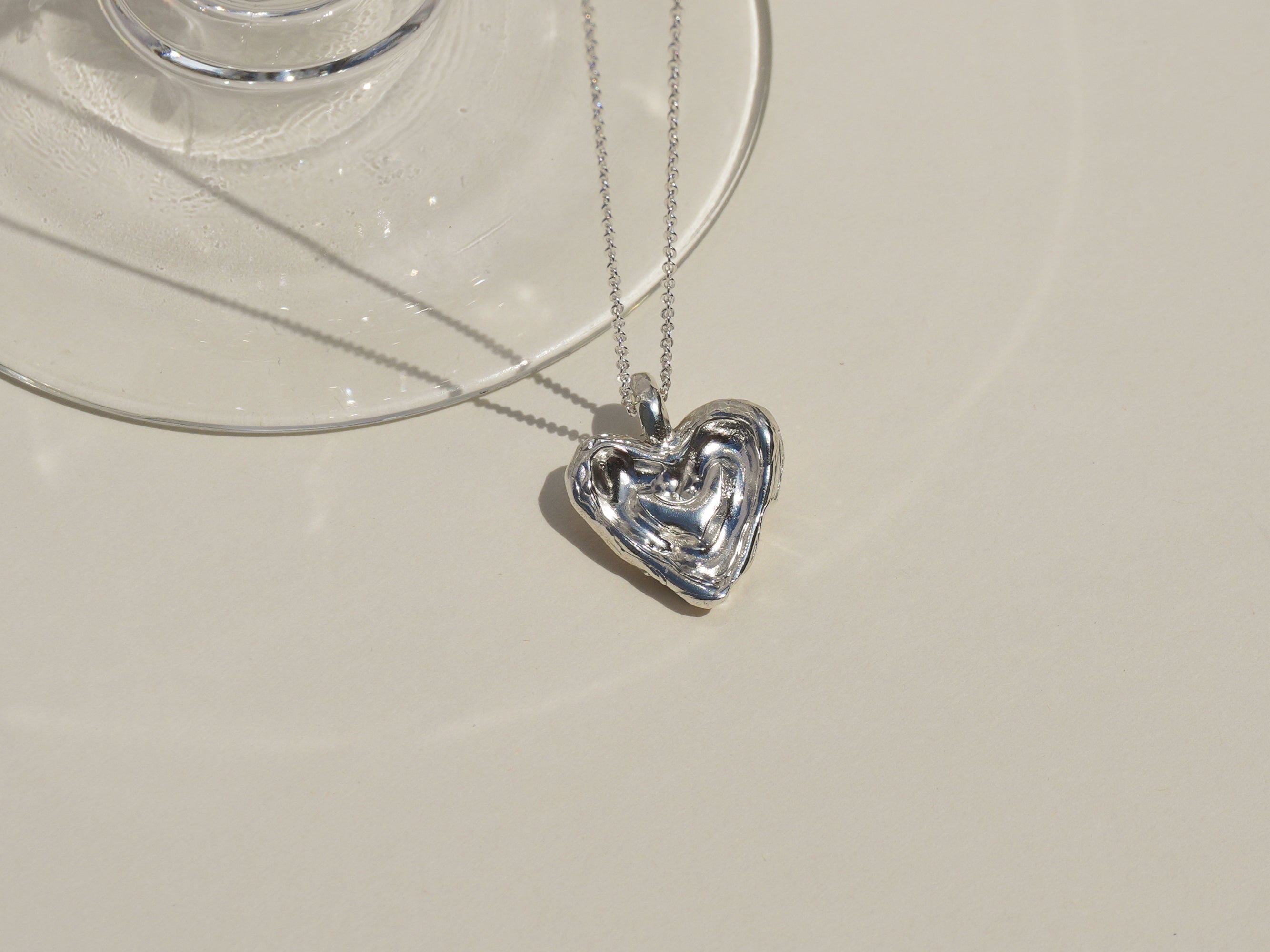This sterling silver heart necklace is inspired by the wax seals once pressed onto love letters—intimate, personal, and meant only for the one who holds your heart. With its molten, organic edges and antique charm, it looks as though it was discovered in a forgotten drawer of a centuries-old desk, where stories of love were once inked by candlelight.