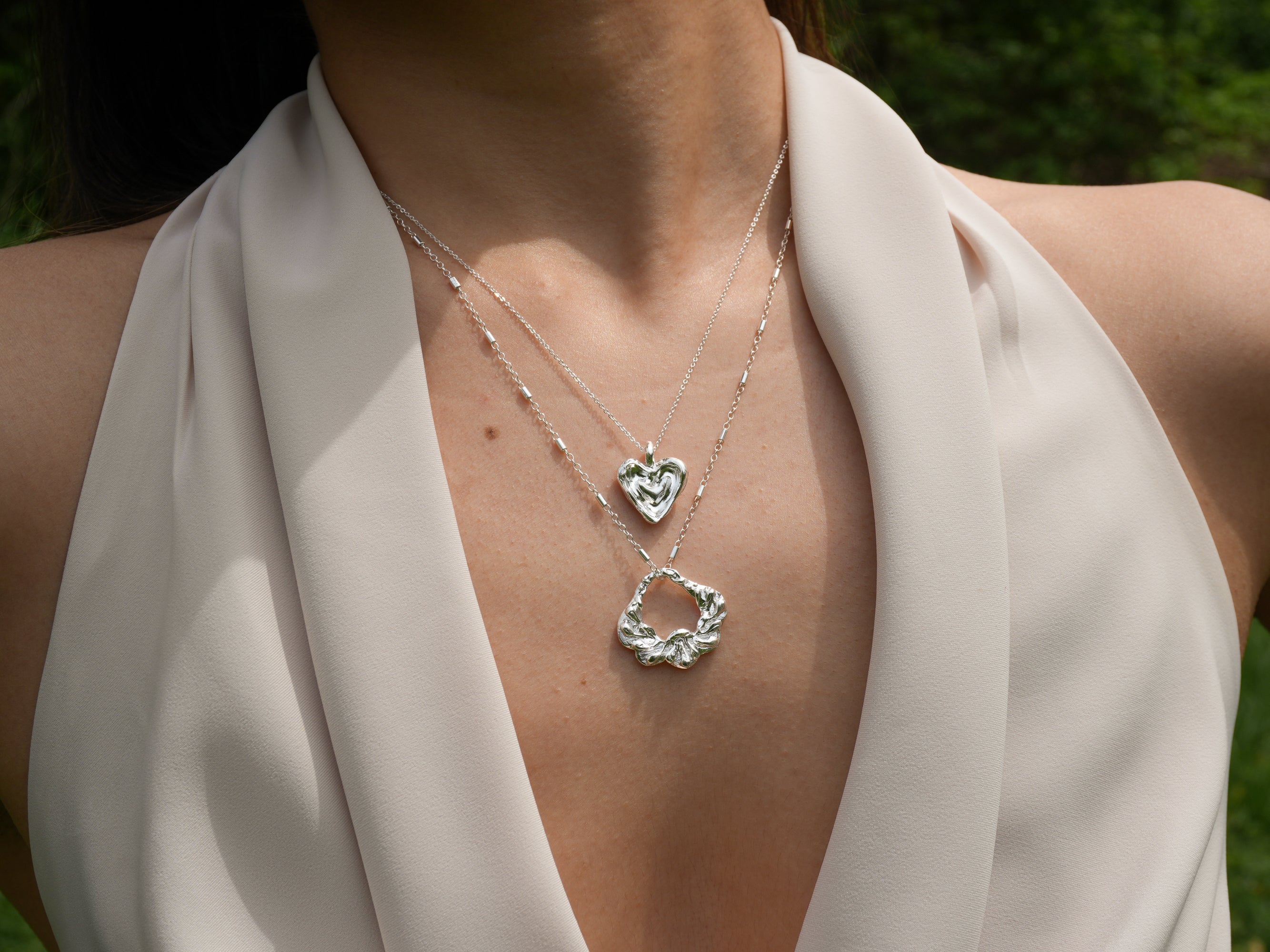 Each pendant is handcrafted in my Virginia studio, giving it a one-of-a-kind texture and soul. Sculptural yet soft, it's a quiet token of affection and perfect for marking your own modern-day love story.